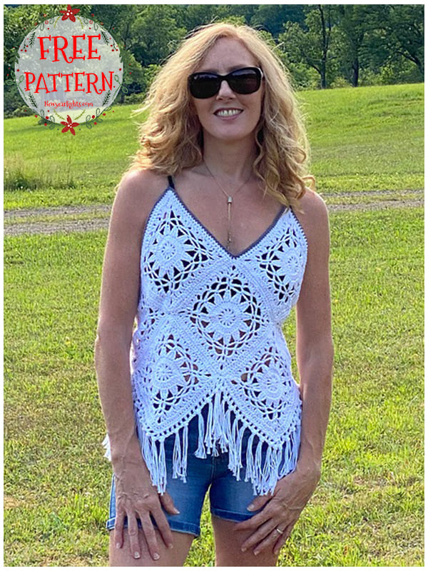 This shell crochet mesh tank top pattern using shell stitches is so pretty. A lightweight and stylish tank top. Wear a tank top underneath and pull this mesh tank top over it.